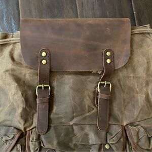 NWT District Fly Brown Leather Fabric Mix Humanely Produced Travelers Backpack