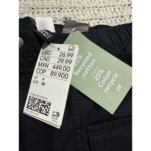 NWT Divided H&M Cargo Pants Casual Wide Leg Women's Size 6 Cotton Black