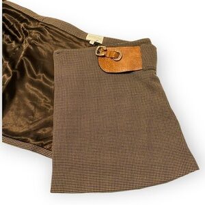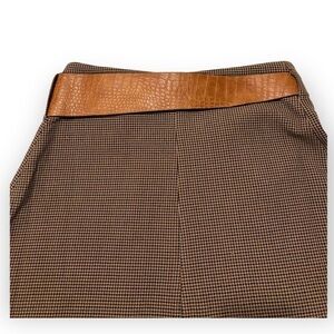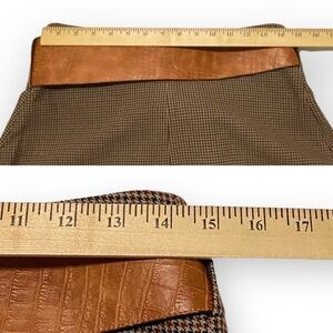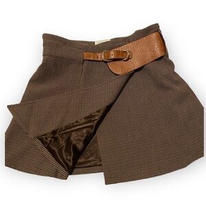 Belted wrap front mini skirt in brown base houndstooth check