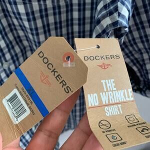 NWT Docker's Men Classic Fit Plaid Check Shirt Blue Hues XL