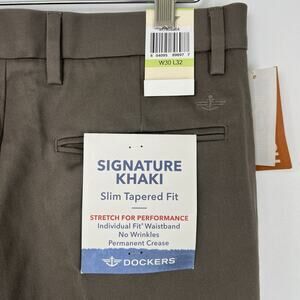 NWT Dockers Men's 30x32 TAN Flat Front Slim Tapered Fit Signature Khaki Pants