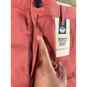 NWT, Dockers, Men's Perfect Shorts, Classic Fit with Hidden Security Pocket, Preppy Coral Pink Club Color, Size: 36. 100% Cotton - Retail price: $48. The short features 2 flat pockets in front, 2 back pockets with button closures and 1 security pocket on the side. .