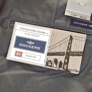 NWT Dockers Signature Khaki D1 Slim Fit Flat Front Dress Pants 36 x 34 Dark Gray