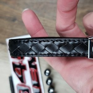 NWT Dodge 345 Hemi Accessory Set. 1 Genuine Leather Keychain, 1 Emblem & 4 Valve Caps