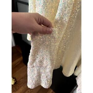 Doe & Rae White Sequin Cardigan Size Large