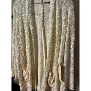 NWT Doe & Rae White Sequin Cardigan Size Large