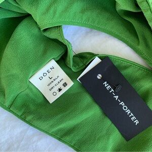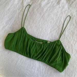 NWT Doen Amora Silk Ruched Cami Camisole Crop Tank Top Evergreen Green