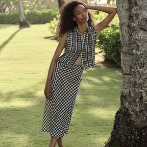 NWT Doen Elowen Linen Rayon Midi Slip A Line Skirt Marilyn Gingham Print