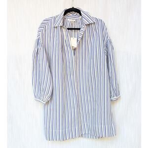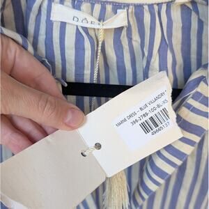 NWT Doen Marne Striped Silk-voile Mini Dress In Blue, size XS