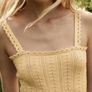 NWT Doen Merise Pointelle Alpaca Silk Square Neck Knit Cami Top Buttercream
