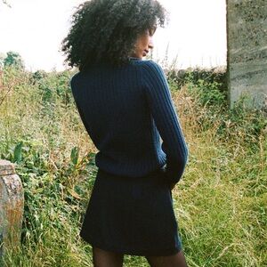 Crafted from an extra-warm wool blend, the Raina Skirt—a favorite of our co-founder, Katherine— takes cues from ‘60s nautical styles. Lined in soft viscose twill, it features an ultra-high waist, an A-line cut, and two welt pockets at the front. The waistband is adorned with two fixed buttons, plus four functional buttons at the sides.