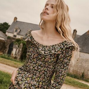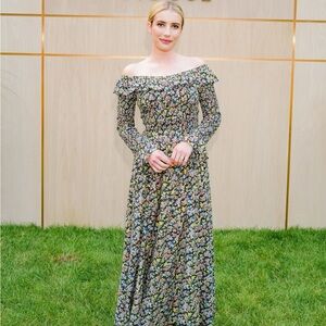 NWT Doen Rosenda Cotton Ruffle Smocked Long Sleeve Maxi Dress Blossom Breeze