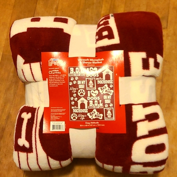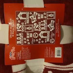 NWT Dog Attitude Microplush and Sherpa Blanket Red and White 50" by 60"