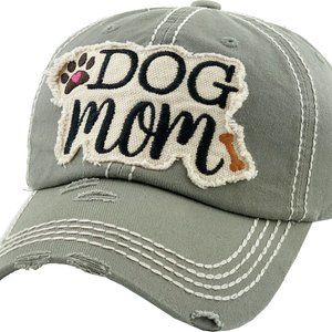 Cute destructed distressed hat with embroidered Dog Mom patch