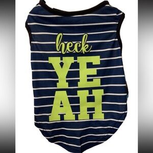 NWT Dog Pet Shirt-Large “Heck Yeah” Fun Summer Stripe Blue Green