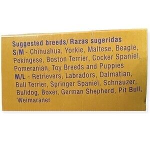 Suggested breeds S/M - Chihuahua, Yorkie, Maltese, Beagie, Pekingese, Boston Terrier, Cocker Spaniel Pomeranian, Toy Breeds and Puppies
