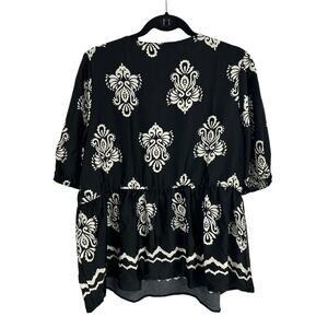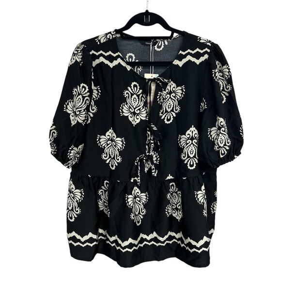 NWT Dokotoo Black Cream Printed Short Sleeve Tie Front Top Womens XL