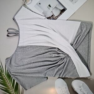 NWT Dokotoo Women Twist Knot Color Block Loose Fit Cold Shoulder XL