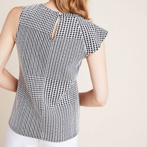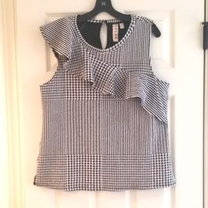 A angled ruffle lends asymmetrical flair to this top's menswear-inpired houndstooth print.