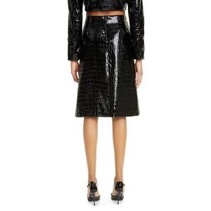 NWT Dolce & Gabbana Black Croc Faux-Leather Midi Skirt IT 36 US XXS
