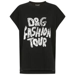 NWT Dolce & Gabbana Black D&G Fashion Tour step-hem T-Shirt IT 40 S