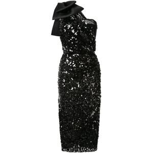 NWT Dolce & Gabbana Black Sequin One Shoulder Midi Cocktail Dress 42 M