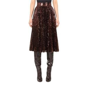 NWT Dolce & Gabbana Bronze Sequin Pleated Long Skirt IT 46 US XL