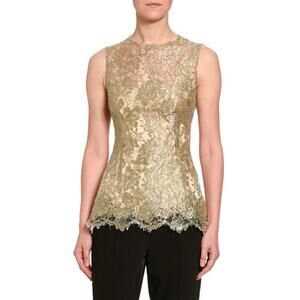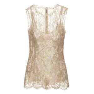 NWT Dolce & Gabbana Gold Metallic Chantilly Lace Sleeveless Top Blouse IT 44 L