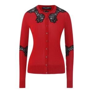 NWT Dolce & Gabbana Red Black Lame ace Cardigan top IT 40 US S