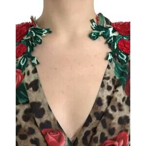 NWT Dolce & Gabbana Rose Leopard Print Silk Chiffon Gown Dress IT 48