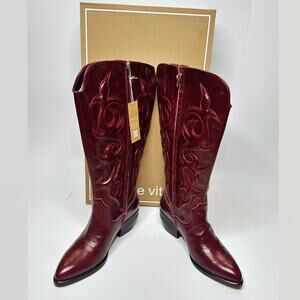 NWT Dolce Vita Mirla Extra Wide Calf Oxblood Leather Knee High Western Boots 9.5