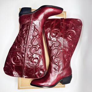Dolce Vita Maroon Wine Dark Cherry Red Oxblood Patent Leather Mirla XWC Extra Wide Calf Western Cowboy Knee High Boots Shoes