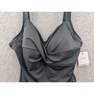 NWT Dolfin Aquashape Women's sz 22 Drape Front Black One Piece Swimsuit