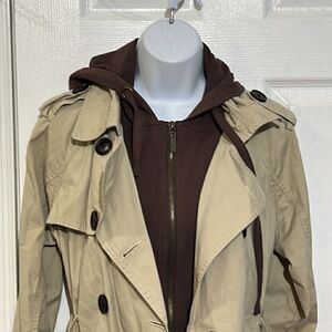 NWT Dollhouse 2 in 1 Women's Khaki removable hooded trench coat Size L