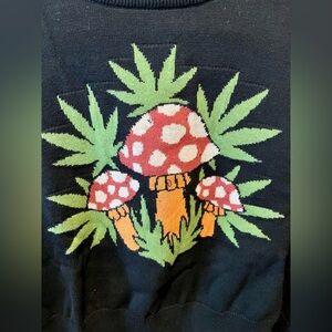NWT Dolls Kill Current Mood Grow Your Own Way Sweater In Black & Mushroom Detail