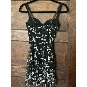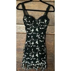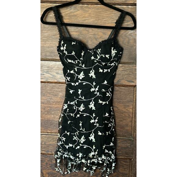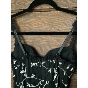 NWT Dolls Kill Protected Aura Slip Dress Black Embroidered Flowers Goth Sz M