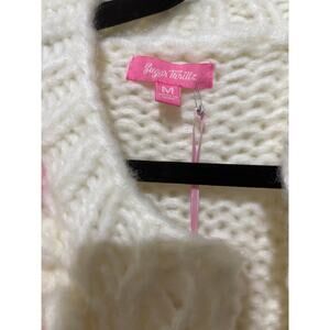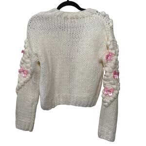 NWT Dolls Kill Sugar Thrillz Chuncky Kit Bow Kawaii Cardigan Sweater M. Cream sweater with pink bows.