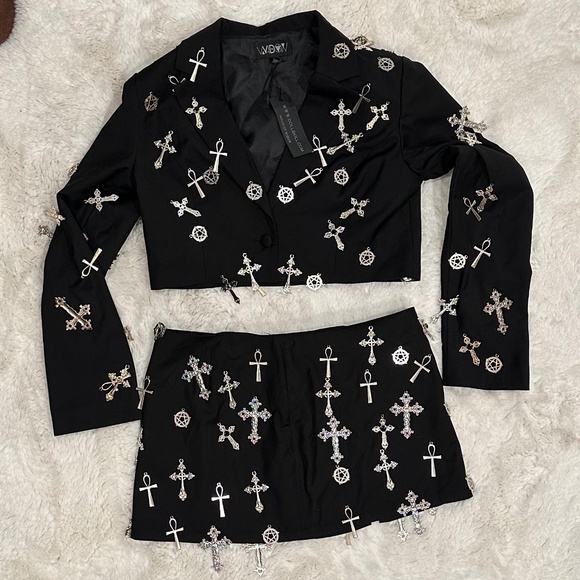 NWT Dolls Kill Widow Crosses Jacket and Skirt Outfit Size Large in Black. NWT Smoke free. Selling together only as it’s rare and very hard to find as it’s discontinued