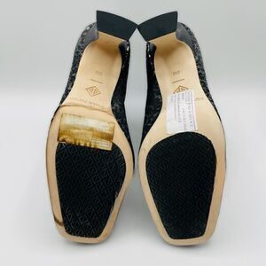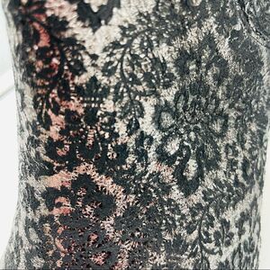 These amazing boots are brand new with the tags attached. One of the tags has water damage, but the shoes are unharmed and have never been worn. They are made of silver and black floral brocade leather and have elastic inserts on the side… which I guess kind of makes them Chelsea Boots??the heels are approximately 3 1/2” high.