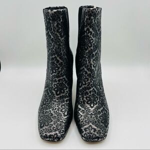 NWT - Donald J. Pliner Rhys Metallic Silver Leather Floral Brocade Ankle Boots