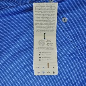 Brand New! Navy blue polo with compressed dots in an angular pattern. Has small logo on chest and sleeve. Check tag photos for size guide. Material has high moisture wicking ability.