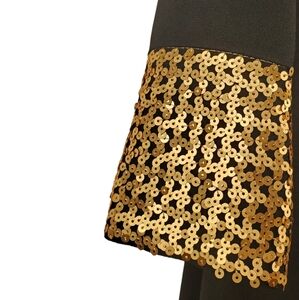 NWT Doncaster Sheath Evening Dress SZ 14 Black Long Sleeve Gold Sequined Vented