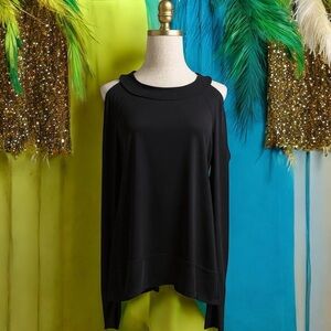 NWT Donna Karan Collection Black Cold Shoulder ‘Refined Matte Jersey Top’ Sz M