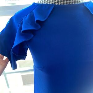 NWT Donna Karan Blue Ruffled Polyester Shift Dress Smoke & Pet free home Always use offer button