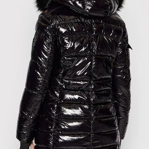 NWT Donna Karan Puffer Coat with Faux Fur detachable Hood Large