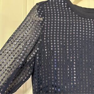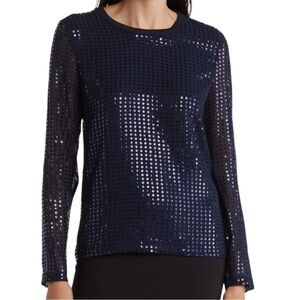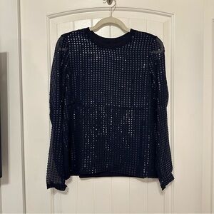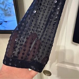 NWT Donna Karan sequin long sleeve blouse sheer sleeves in indigo sunset, S