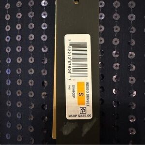 NWT Donna Karan sequin long sleeve blouse sheer sleeves in indigo sunset, fully lined torso, size small. A gorgeous high quality designer piece. Retails new for $225.
