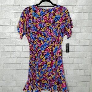 NWT Donna Morgan Floral Short Sleeve Ruffle Hem Dress