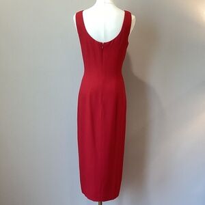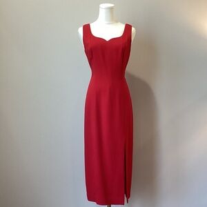 New with tags. Beautiful Red Donna Rico sleeveless evening dress with sweetheart neckline and side slit. Dress comes with matching short-sleeved cropped jacket with three-button closure. Size Petite 8.