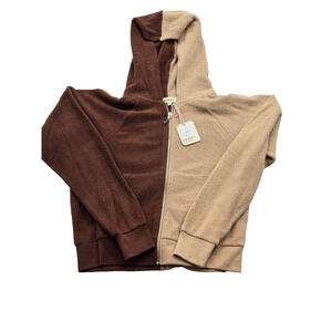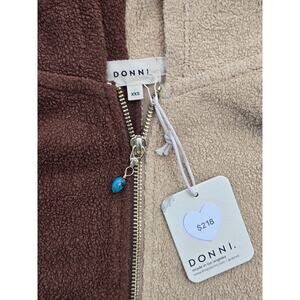 NWT Donni Cream Brown Brushed Terry Duo Zip Up Hoodie - XXS Chocolate/Lychee